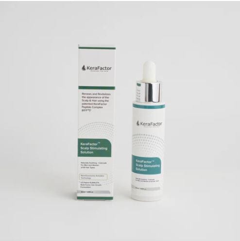 Each highly concentrated 50ml bottle of KeraFactor Solution contains the proprietary KeraFactor Peptide Complex (KFP™). KFP is unique in that it contains 7 Polypeptides that include both specifically selected growth factors and skin proteins to help with hair and scalp health. This patented complex helps to "turn on" weak or resting hair follicles and improve scalp circulation and nutrients to produce thicker, longer healthy-looking hair.